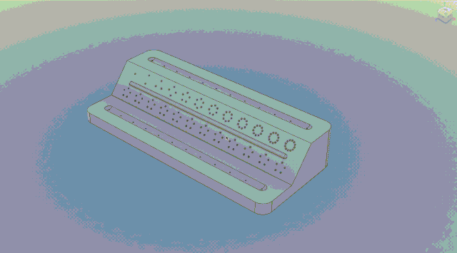 Prototype Three demanded a completely new enclosure design. Nothing too complex though: again based on the PCB outline to minimise size but with a slope based on the calculated minimum air gap + fudge factor between the rows. I made full use of the slope to make the position indicators clearer with an LED light diffuser between them.